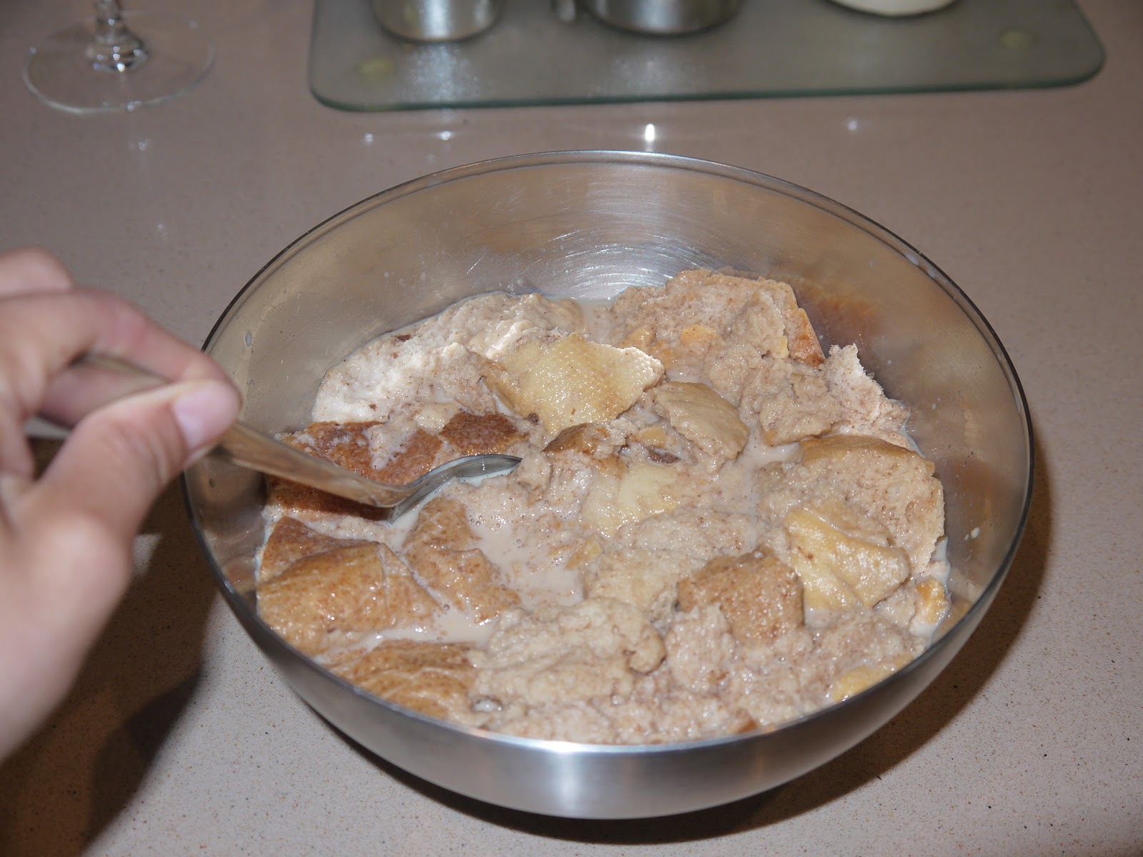 la leche al pan y lo mezclamos todo. Dejamos reposar una hora o hasta que el